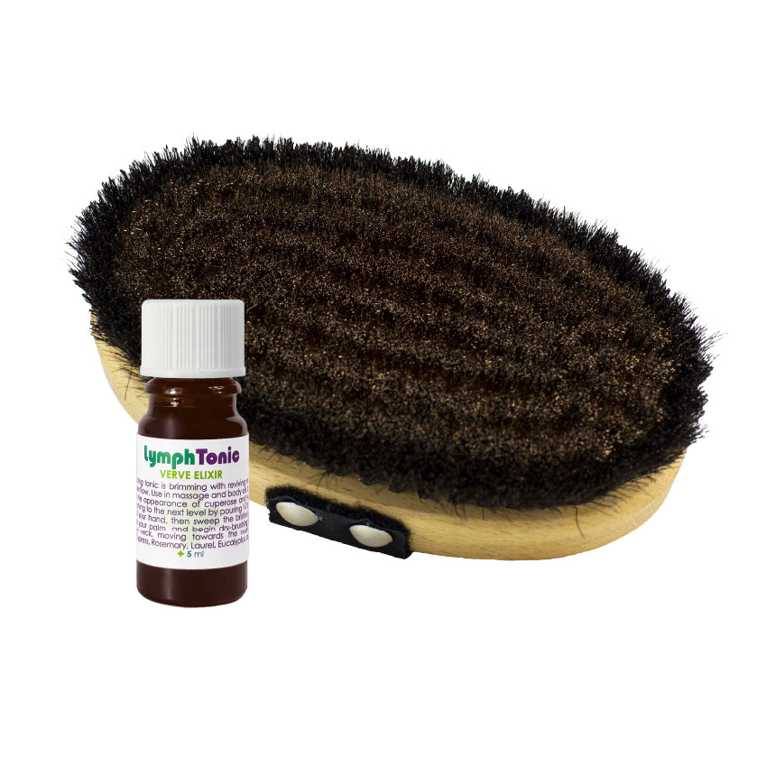 Get ready to dry brush and defy stagnation! The Lively Lymph Dynamic Duo is designed to humor the humors that flow through your beauty and wellbeing. By combining the phyto-molecular power of our Lymph Tonic with the oxygen-boosting friction of the Ionic Energy Brush, you create a powerhouse protocol for systemic elimination and enlivening beauty care.